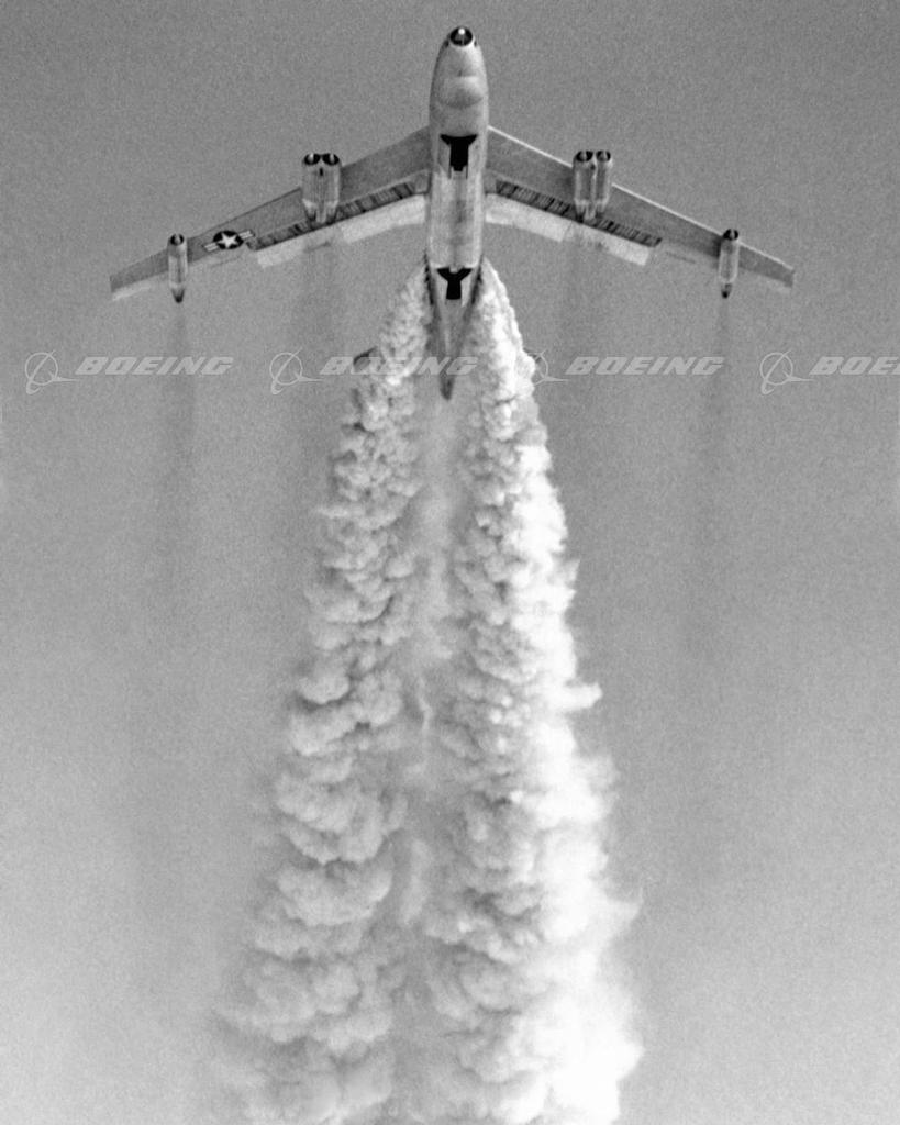 At the time of its first flight, Dec. 17, 1947, the B-47 Stratojet represented a radical departure from traditional design, and it set the design standards for all large jet aircraft until the present time. The six-engine Boeing B-47 was America's first multiengine swept-wing jet bomber. Its thin 116-foot wing was extraordinarily flexible and swept back at a 35-degree angle. Eighteen small rocket units in the fuselage provided jet-assisted takeoff (JATO), and parachutes cut its landing speeds. Later models were powered by 5,200-pound-thrust axial-flow jet engines, and top speeds were 600 mph. A total of 2,032 B-47s in all versions were built.