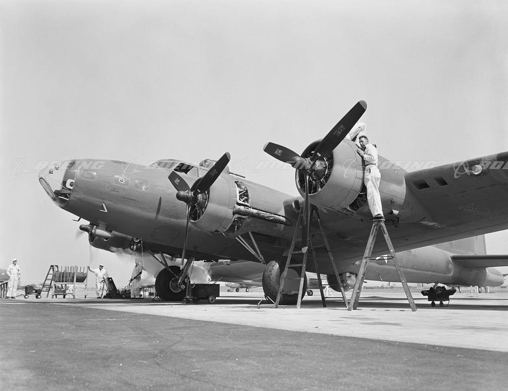 Working on a B-17F Flying Fortress