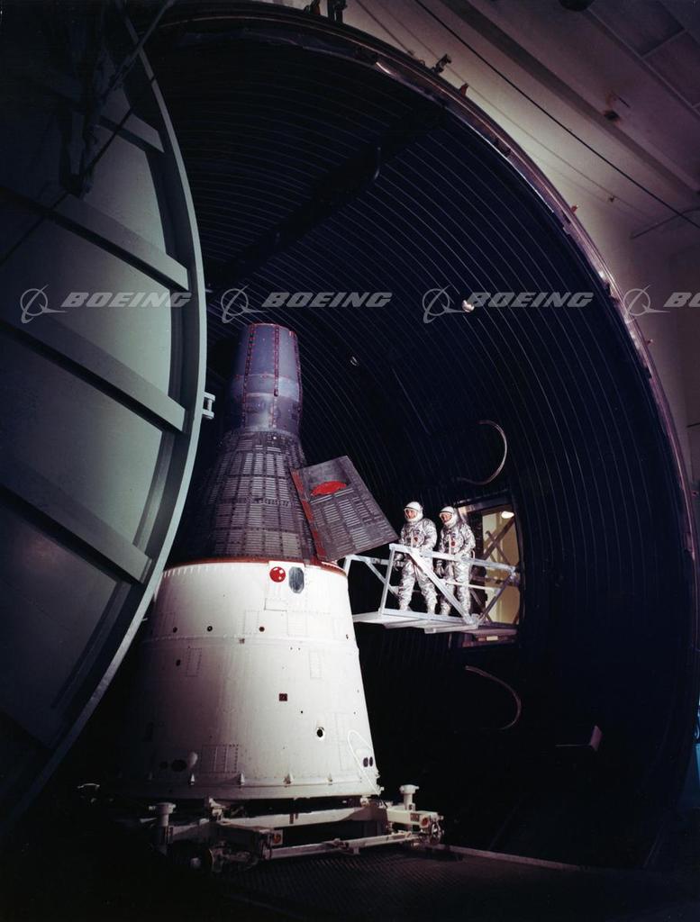 Astronauts on Gangplank Entering Gemini Capsule in Test Chamber