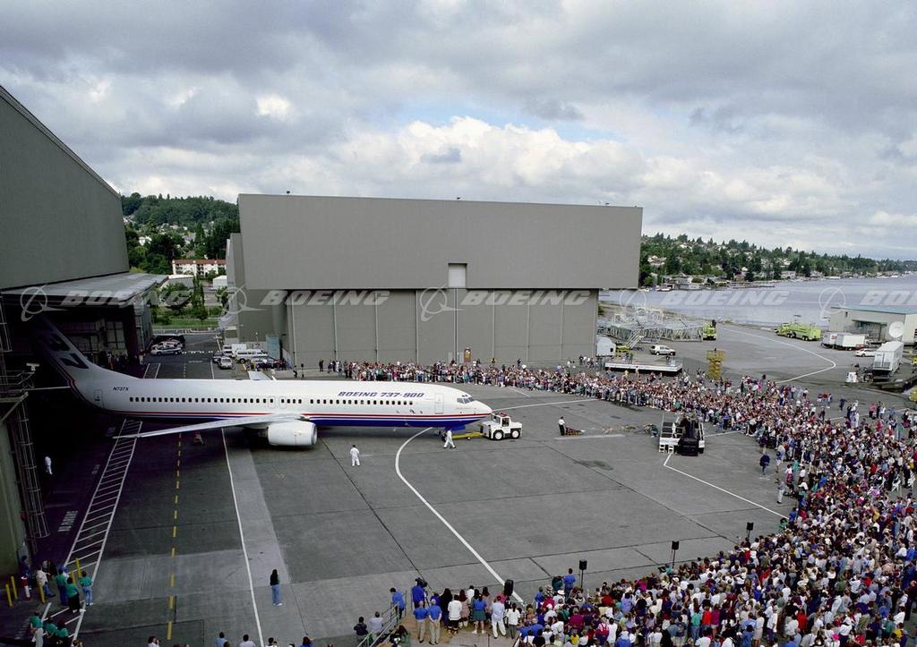 Crowd Gathers Around the First 737-900 at the Rollout Ceremony