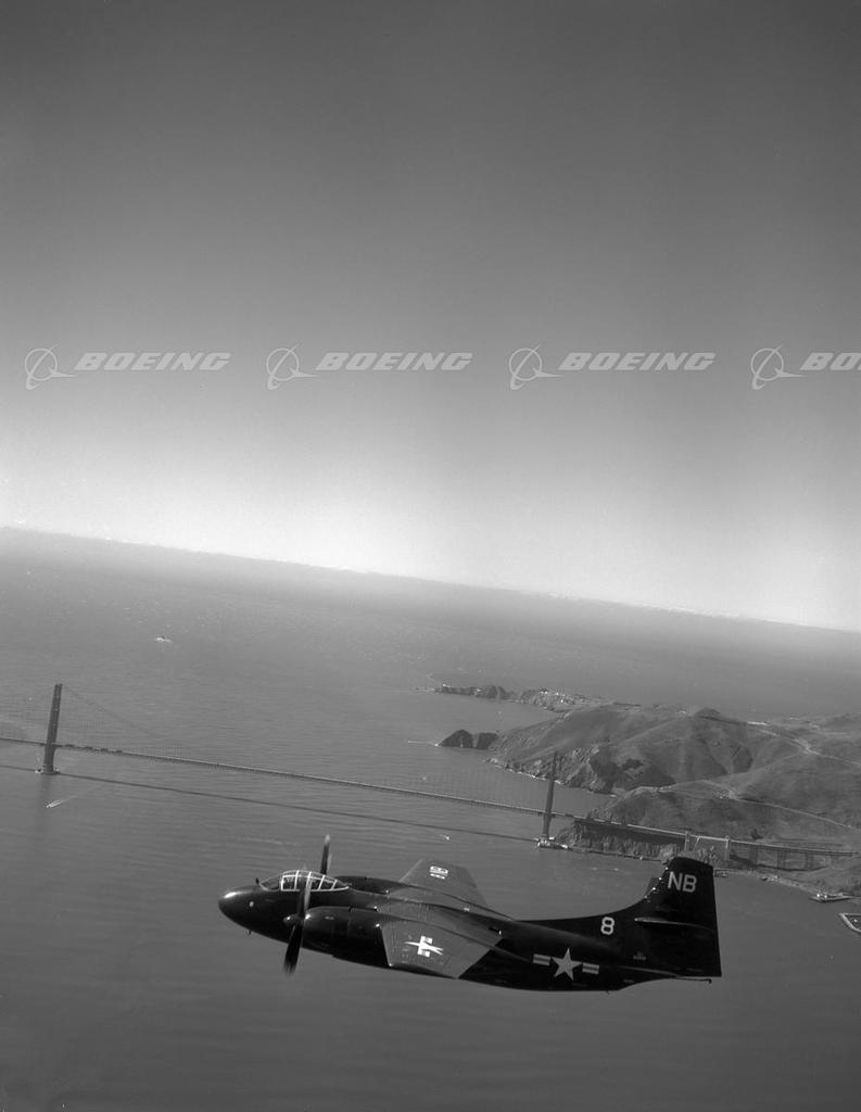 AJ-2 Savage Flying Over Aircraft Carrier at Sunset
