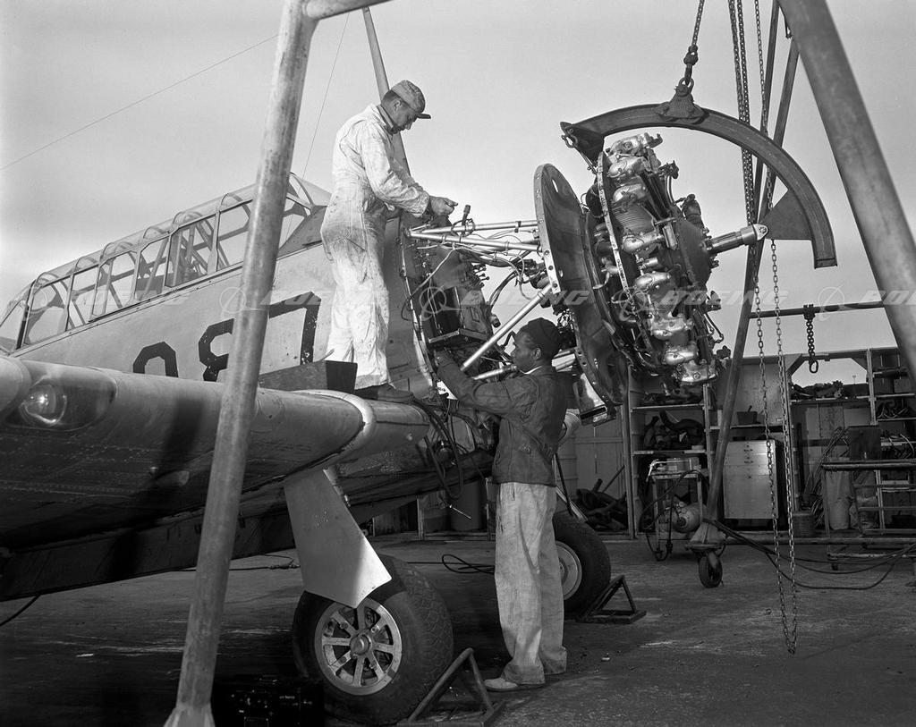 The North American T-6 Texan two-place advanced trainer was the classroom for most of the Allied pilots who flew in World War II. Called the SNJ by the Navy and the Harvard by the British Royal Air Force, the AT-6 (advanced trainer) was designed as a transition trainer between basic trainers and first-line tactical aircraft. It was redesignated T-6 in 1948. In all, the T-6 trained several hundred thousand pilots in 34 different countries over a period of 25 years. A total of 15,495 of the planes were made.