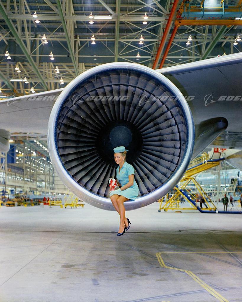 Lufthansa Stewardess Poses with first 747