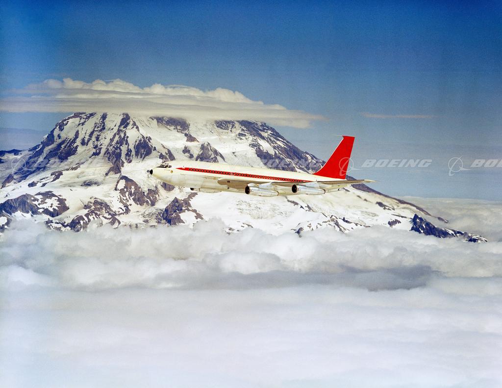 707-120, 1 and 3, in Certification Flight over Mt. Rainier