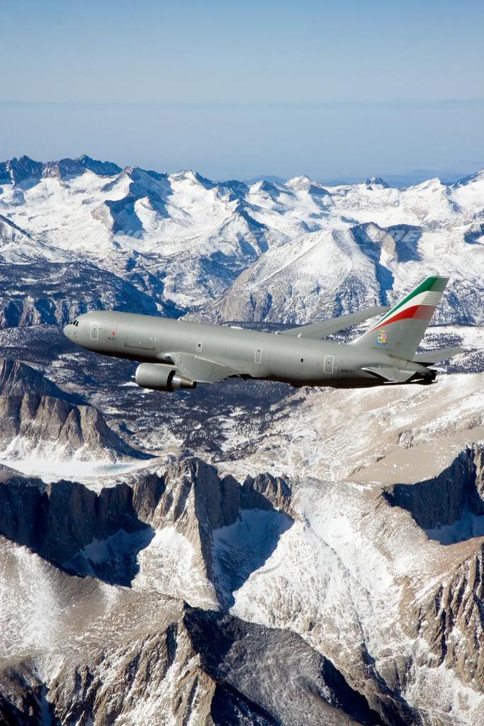 Italian Air Force 767 Tanker Above Snowy Mountains