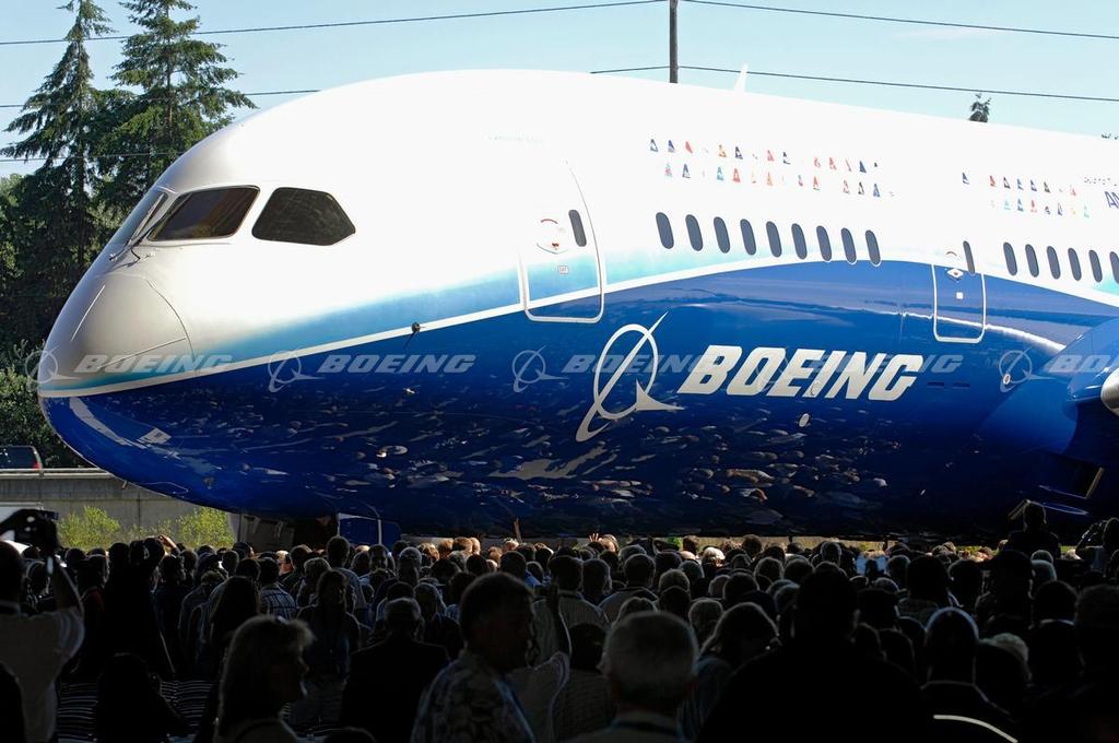 Crowds Gather Under the New 787 Dreamliner at its Rollout Event
