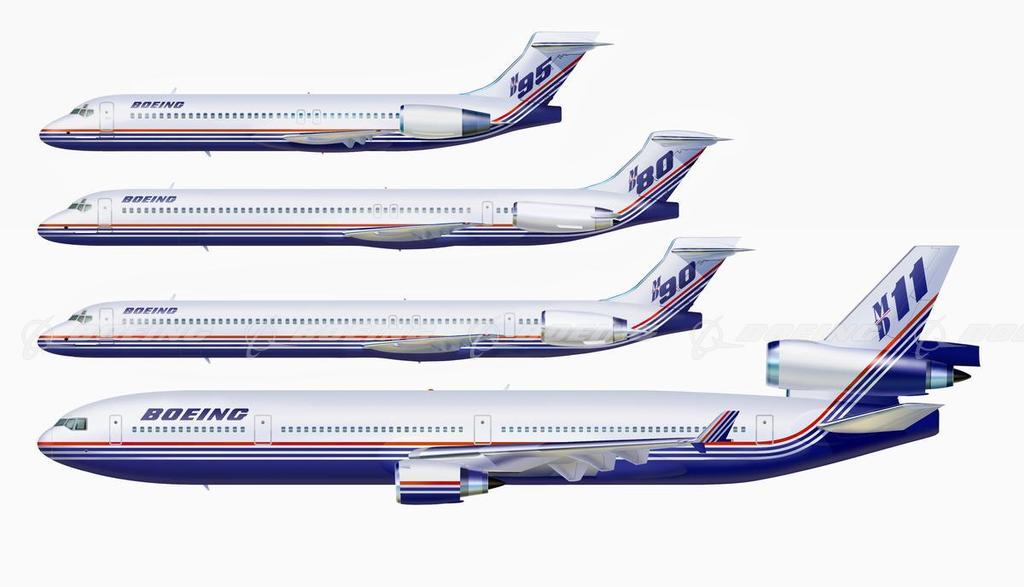 On August 1, 1997, The Boeing Company, along with its North American component, merged with McDonnell Douglas Corp. Pictured here is McDonnell Douglas' family of commercial jet transports that were in production at the time of the merger with Boeing. On January 1998, Boeing changed name of the MD-95 jetliner to the 717-200.