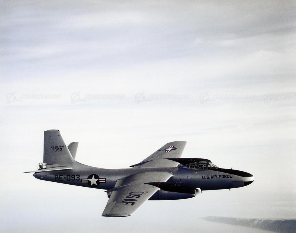 The North American Aviation B-45 was one of America's first operational bombers to employ jet propulsion. Designed during 1944 and 1945, the straight-wing Tornado was the first jet bomber in service with the U.S. Air Force and was the first four-jet aircraft to fly in the United States. Other versions include the longer-range B-45C with wing-tip tanks and the photoreconnaissance version, the RB-45C. Rated as a light bomber by modern-day standards, it was the first four-jet aircraft to drop an atom bomb and the first to be refueled in midair.