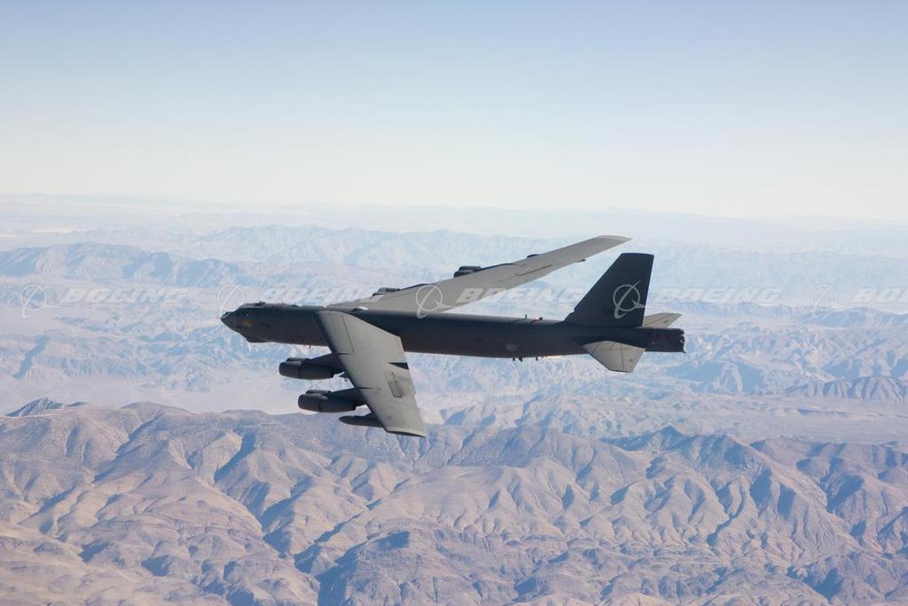 B-52H Stratofortress in Flight Over Snowy Mountains