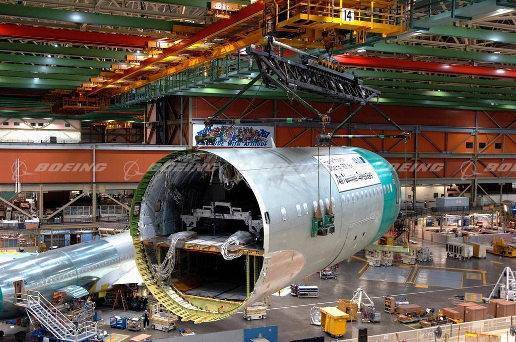It takes just over three hours for crane crews to maneuver the four major body sections of the 767 into place at Boeing's Everett facility. Mechanics then secure the airplane sections in preparation for final assembly.