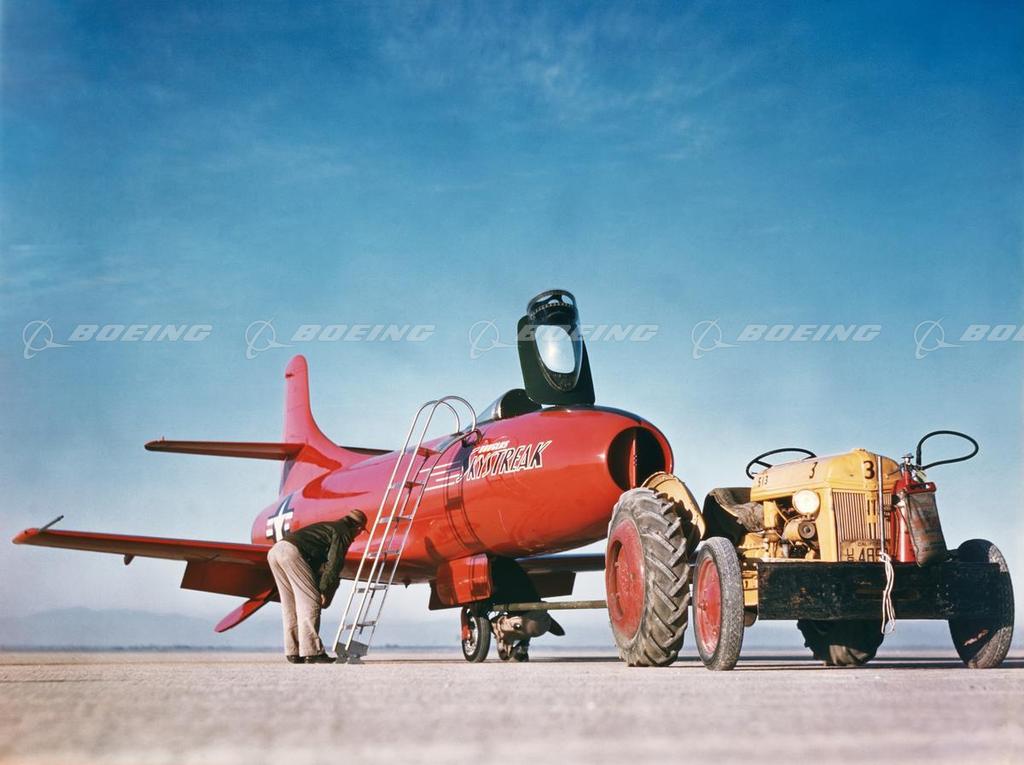D-558-1 Skystreak #1 with Tractor at Muroc Air Base