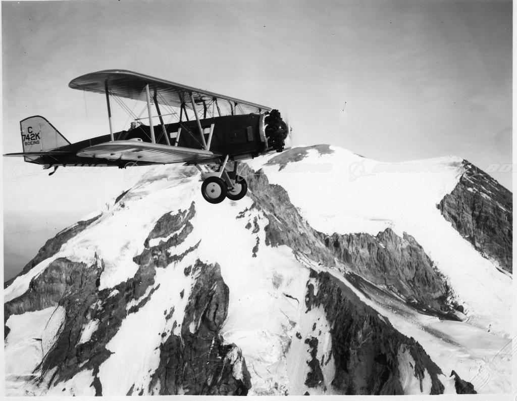 Boeing Model 40A Mail Plane in Flight Above Nevada's Ruby Mountains