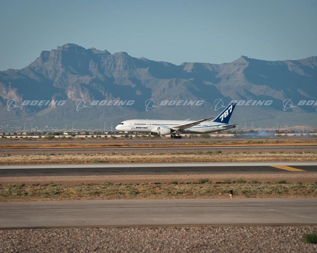The fourth 787 to be built, ZA004, underwent a short series of tests at Phoenix-Mesa Gateway Airport that required a combination of hot weather and low-altitude conditions. A crew of nearly 75 is supportied the airplane to ensure smooth operations during testing in May 2010.
