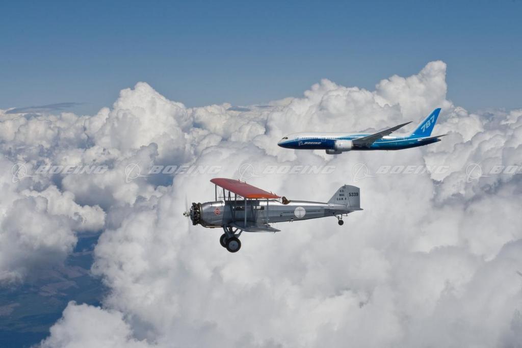 Boeing 787 Dreamliner and photo chase jet on first flight.