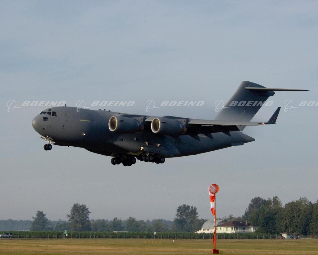 C-17 Globemaster III Landing Over a C-17 in the Foreground