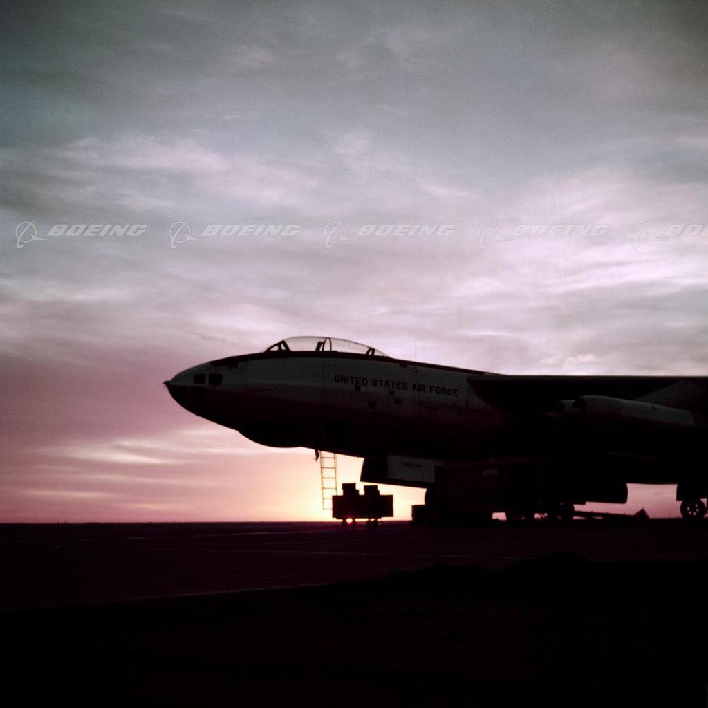 The Boeing B-47 was the country's first swept-wing multi-engine bomber. It represented a milestone in aviation history and a revolution in aircraft design. Every large jet aircraft today is a descendant of the B-47. Because early jet engines could not provide enough thrust for takeoff, the prototype XB-47 had 18 small rocket units in the fuselage for jet-assisted takeoff (JATO). Thrust reversers and anti-skid brakes had not yet been developed, so a ribbon-type drag parachute reduced the B-47 landing speed.