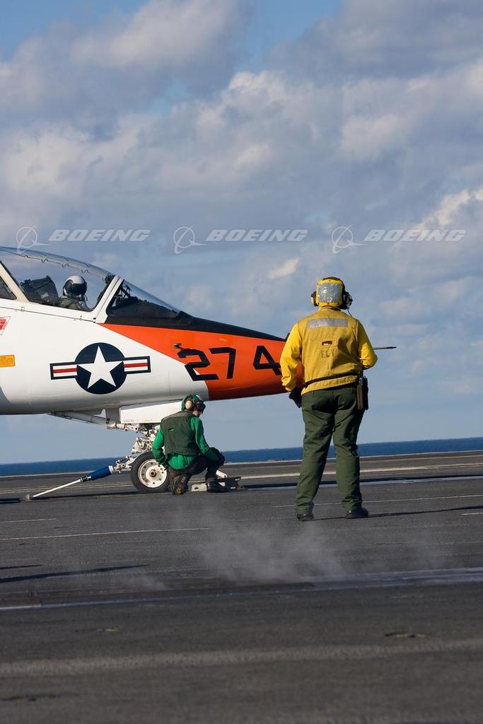 T-45 Goshawk Aboard USS Theodore Roosevelt Prepares for Catapult Launch