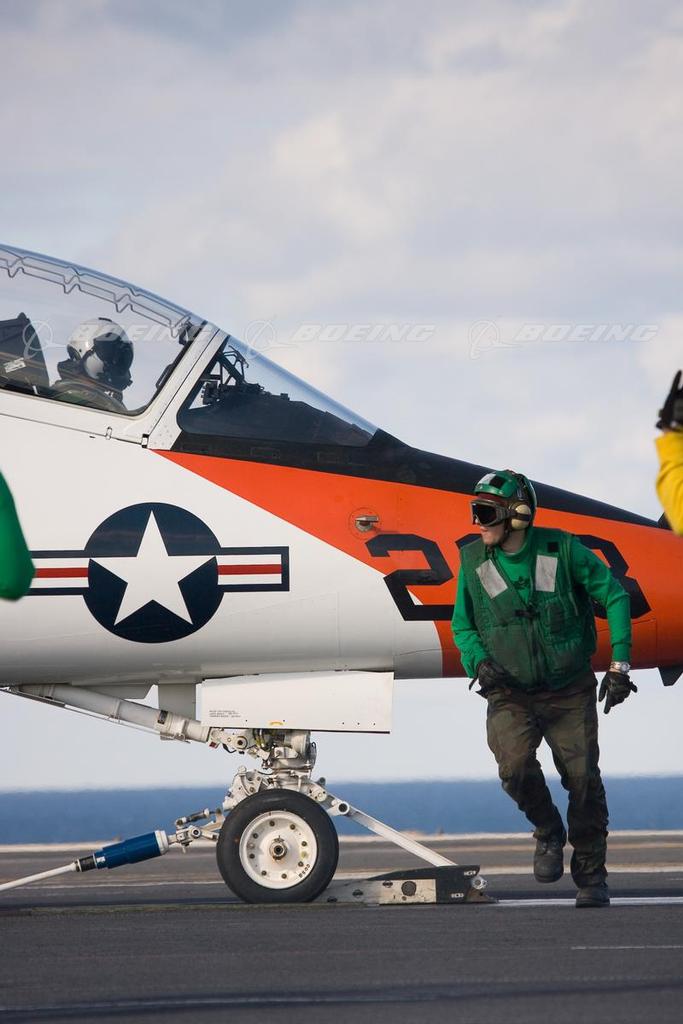 The T-45 Goshawk is the center of the T-45 training system, which was designed for undergraduate jet aircraft training. The Goshawk is a heavily modified naval variant of the Hawk, a land-suitable trainer produced by U.K.-based BAE Systems. Boeing delivered the 221st and final T-45 training jet to the U.S. Navy in November 2009.