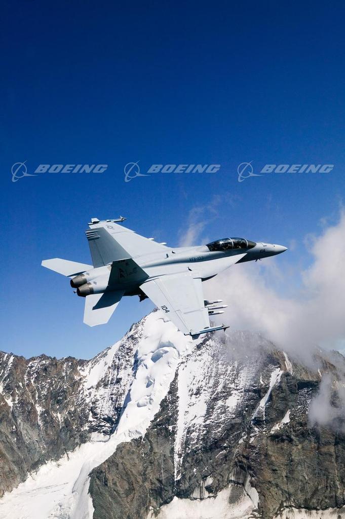 F/A-18E/F Super Hornet in Flight over Swiss Alps