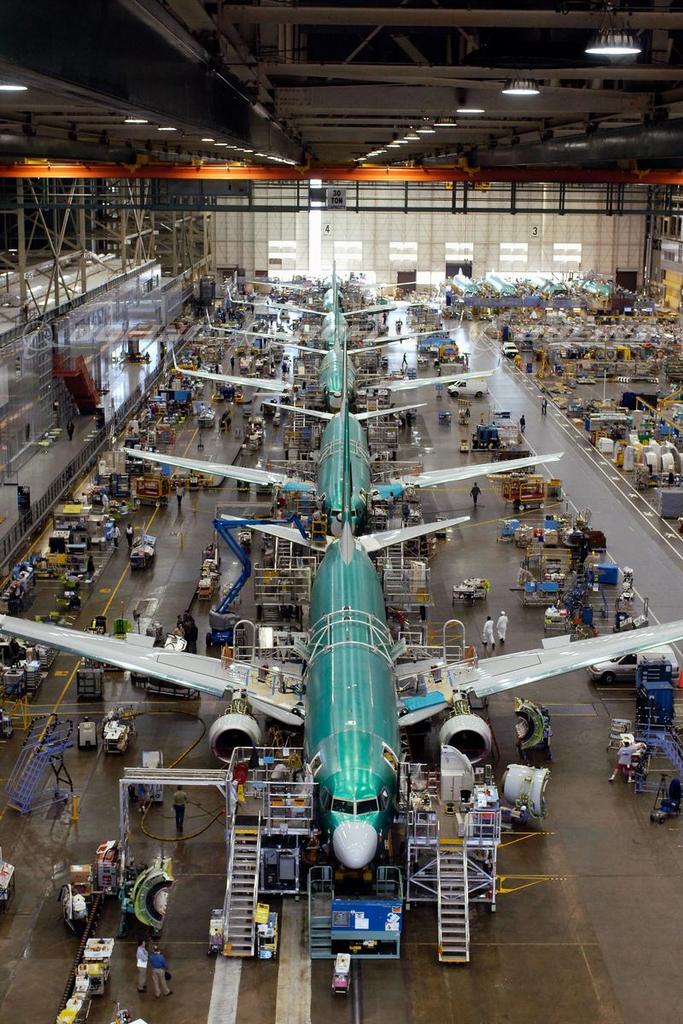 In 2002 the 737 manufacturing process at Boeing's Renton Assembly Plant converted to a moving line system, replacing the station to station method of assembly. Here, the first 737-800 for JAL moves through the production line at Boeing's Renton factory.