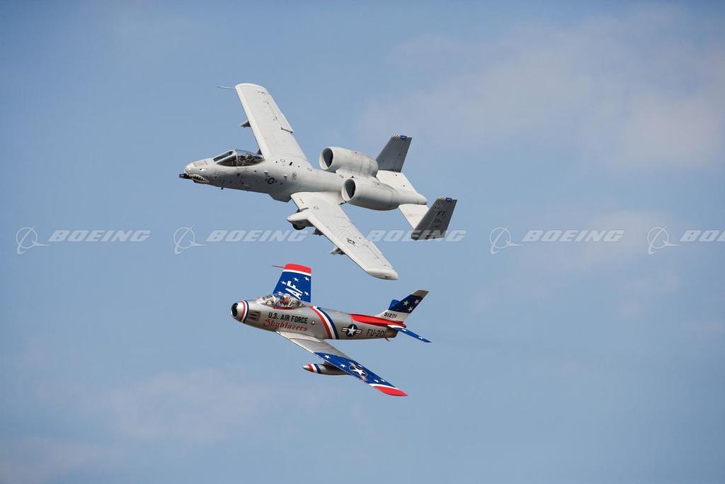 F-86 Sabre Jet Flying with A10 Wart Hog in an Air Show Performance
