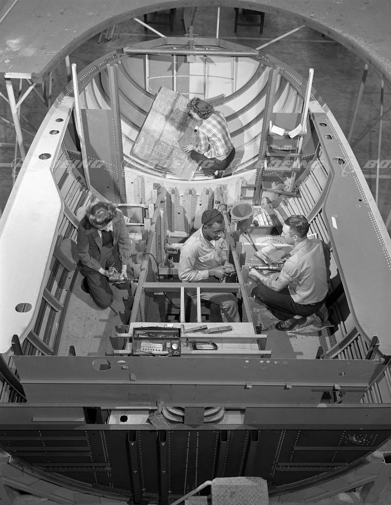 Boeing Workers Inspect Ryan Built Fuselage Section for KC-97G