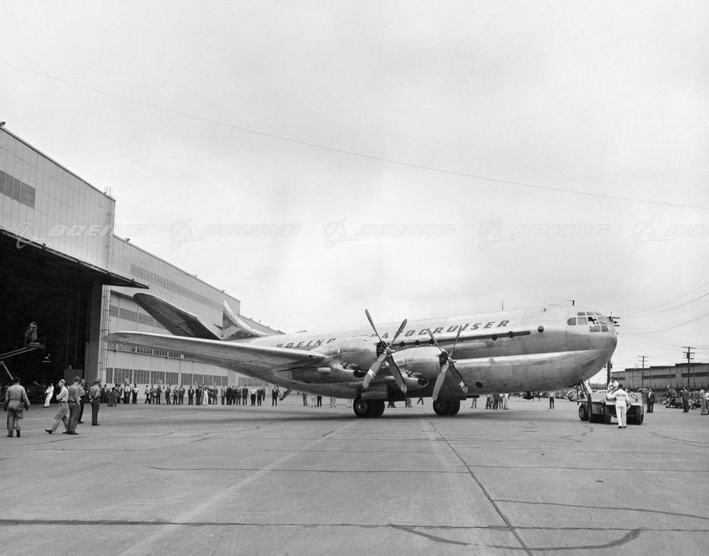 The Boeing 377 Stratocruiser of 1947 provided seating for 55 passengers, or 100 passengers with its sleeping berths deleted. Stratocruisers were the last piston-powered airliners built by Boeing.