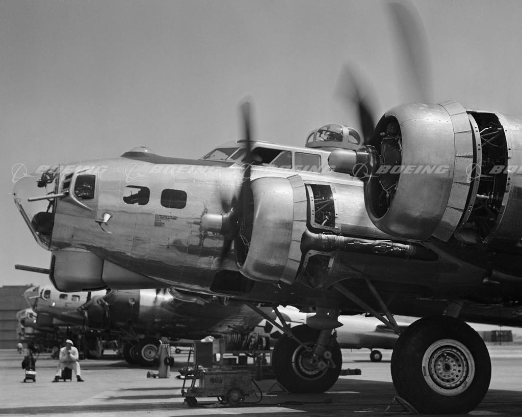 As the storm of World War II shook the world, Boeing-designed B-17 bombers darkened European skies, dropping 640,036 bombs on designated targets. Described by General H. H. Hap Arnold, as the backbone of our worldwide aerial offensive, the B-17 Flying Fortress served in every World War II combat zone. Boeing, Douglas, and Lockheed Vega produced 12,731 B-17s at plants across the country, and the four-engine bombers became legendary for their ability to stay in the air after taking brutal poundings.