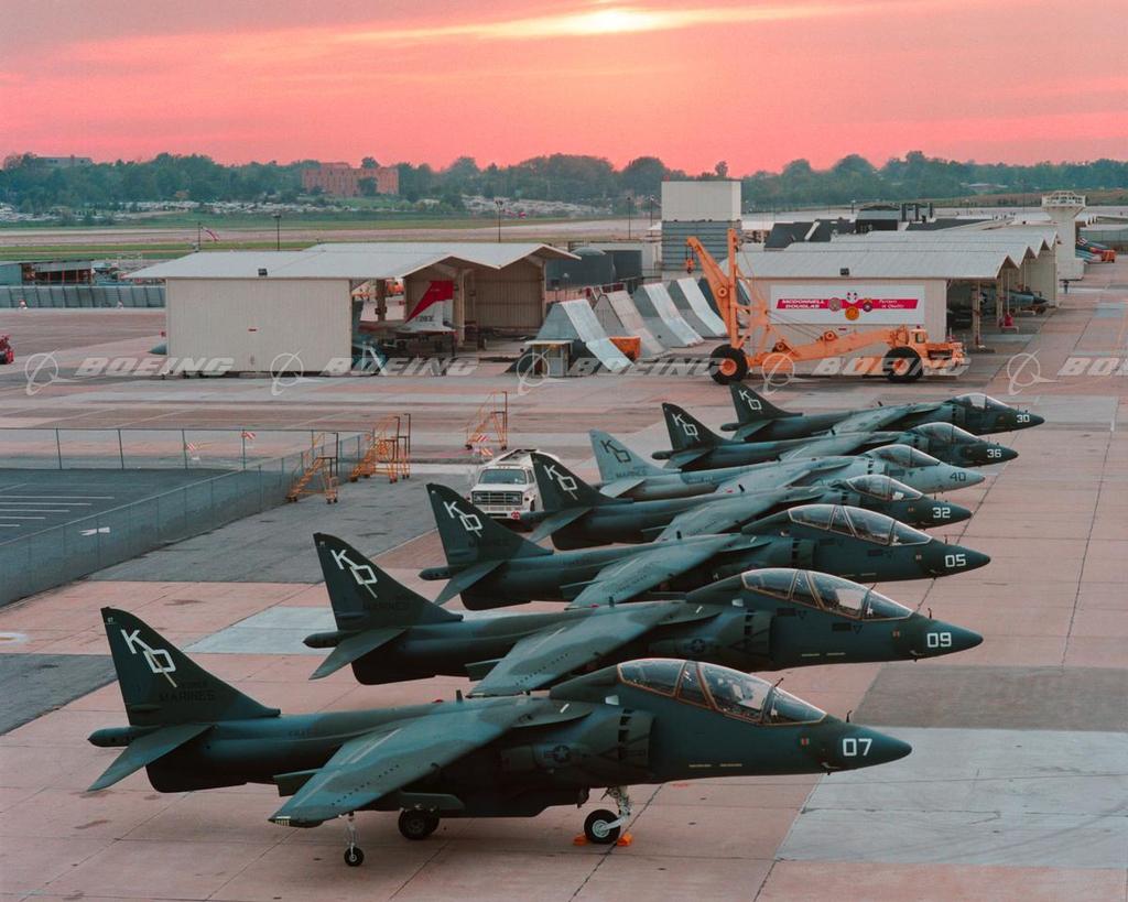 McDonnell Douglas AV-8B Harrier II (1978-1995) and AV-8B Harrier II Plus (1992- ): The eye-catching trademark of the AV-8B Harrier II - its ability to takeoff and land vertically - makes it one of the world’s most recognizable aircraft. In 1969 McDonnell Douglas teamed up with British Aerospace and Rolls -Royce to develop an advanced-technology upgrade of the original Harrier “jump jet.” The AV-8B’s first flight took place in St. Louis on November 9, 1978. The U.S. Marine Corps, Britain’s Royal Air Force and the navies of Spain and Italy fly the aircraft. Designed to provide fast and effective close air support to ground forces, the AV-8B can operate from field clearings, roads, bomb-damaged runways, and small ships. A two-seat trainer version, the TAV-8B, first flew in 1986. The night attack version of the AV-8B, with a forward-looking-infrared sensor mounted above its nose, made its first flight in 1987. A total of 377 AV-8Bs were built in St. Louis and delivered between 1978 and 1995. The newest version of the Harrier is the AV-8B II Plus, which made its first flight on September 22, 1992. Equipped with the same radar used on the F/A-18C Hornet, the Harrier II Plus can perform air-to-air, anti-ship and close-air-support missions around the clock and in bad weather. A Boeing, British Aerospace and Rolls-Royce team produces the plane, which was developed through a three-nation agreement between the U.S., Spain and Italy. Through a remanufacturing program, earlier versions of the AV-8B are converted into the Harrier II Plus at a much lower cost than an all-new aircraft. The U.S. Marine Corps received its first Harrier II Plus in 1993 and its first remanufactured aircraft in 1996. Final assembly of the Harrier II Plus is done at the Boeing plant in St. Louis. To date, 51 new and 68 remanufactured AV-8B Harrier II Plus aircraft have been delivered.