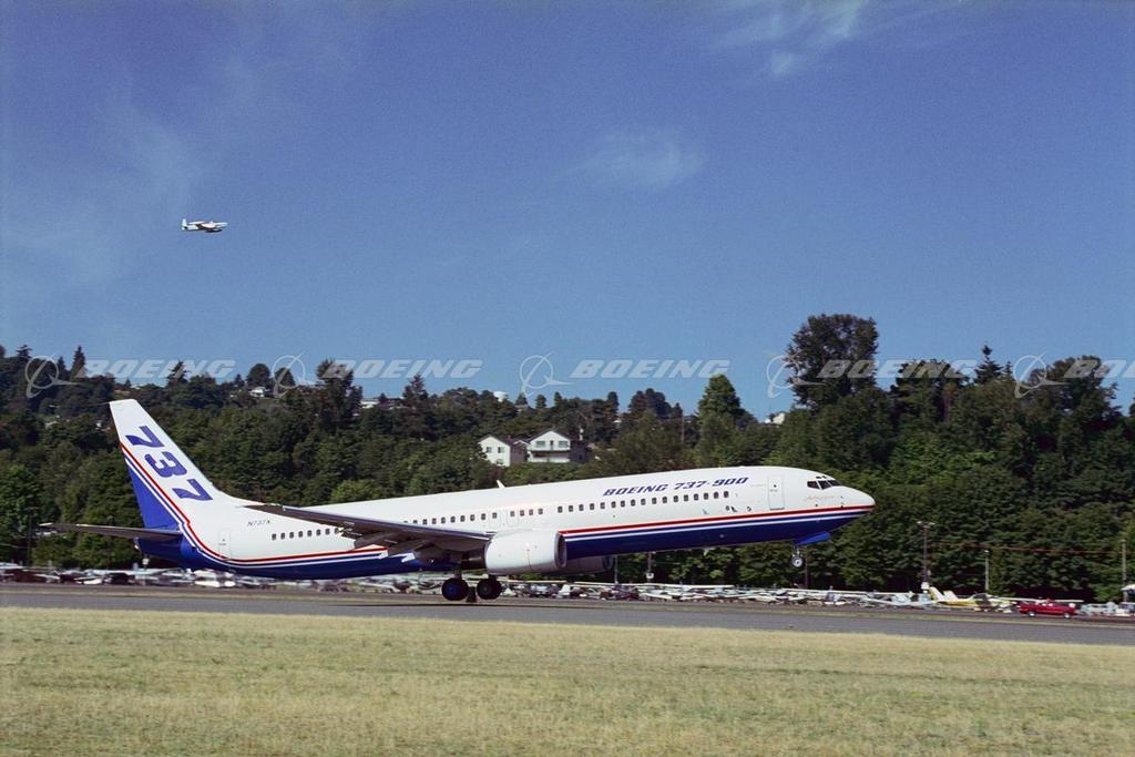 The Boeing Next-Generation 737-900 takes off on its maiden flight from Renton Municipal Airport in Renton, Wash. The Boeing 737-900, the largest of the Next-Generation 737 models, is a derivative of the Boeing 737-800. The airplane, the first of 11 737-900s ordered by Seattle-based Alaska Airlines, now will participate in a six-month flight-test program. KLM Royal Dutch Airlines, Korean Airlines and Continental Airlines also have ordered the 737-900.