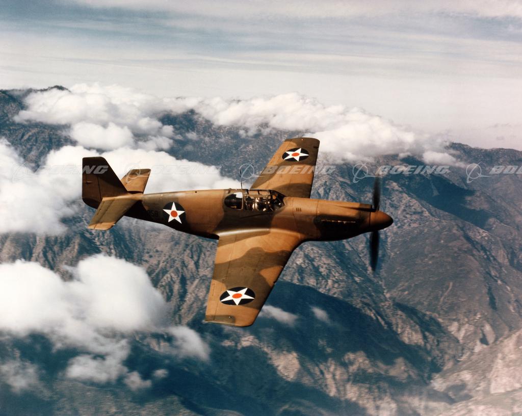 The early versions of the fast and powerful P-51 Mustang looked very different from the P-51D and later versions. The initial P-51 “razorback” design buried the pilot inside the airplanes for less drag, while the P-51D, while also very efficient aerodynamically, was the first to use a “teardrop” bubble canopy and cut-down rear fuselage. North American Aviation’s agile P-51 was the first single-engine aircraft based in England to penetrate Nazi Germany during World War II. With its superior design, the Mustang outperformed enemy planes and went on to establish an impressive aerial record. Initially designed for the British Royal Air Force for fighter reconnaissance, it first flew in 1941. By war’s end North American built 15,575 P-51 Mustangs. The P-51D Mustang had a wingspan of 37 feet and was 32 feet long. Powered by one 1,490- horsepower engine, it flew 437 mph with a range of 2,300 miles.