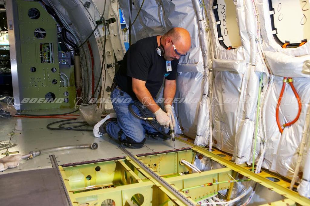 Factory Worker Inside a 737 Fuselage