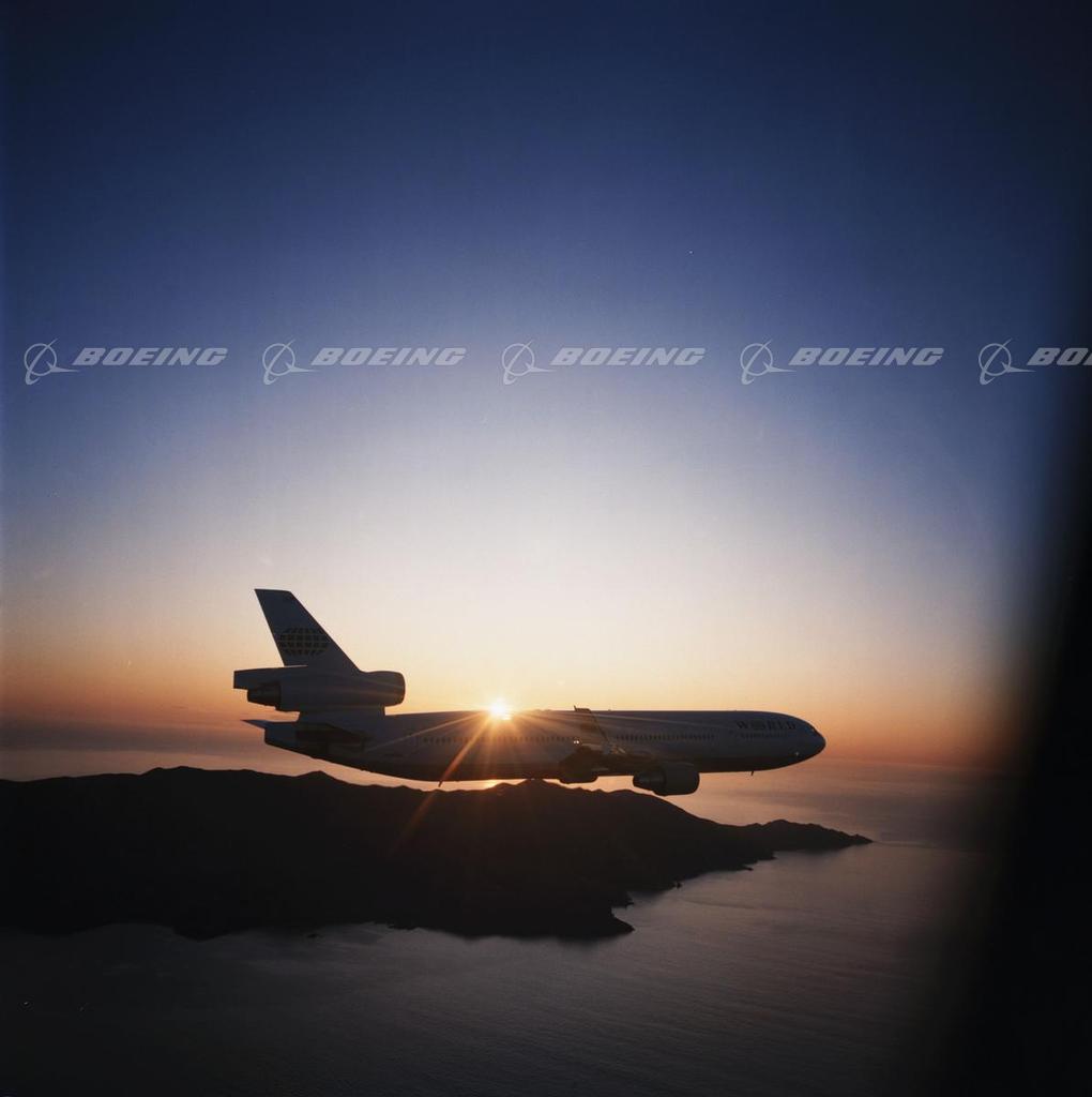 MD-11 Convertible Freighter in Flight Above the California Coast