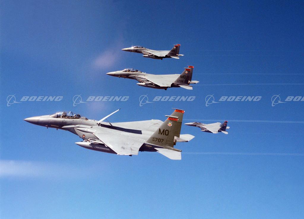 F-15E Strike Eagle (1986 - ) is the world's most capable multi-mission fighter, and will be in service with the U.S. Air Force well into the 21st century. The F-15E carries up to 23,000 pounds of air-to-ground weapons, more than any other tactical fighter. It also has the air-to-air dog fighting capability of the original F-15. The dual-role Strike Eagle first flew on December 11, 1986, from McDonnell Douglas facilities at Lambert-St. Louis International Airport. The F-15E has two crewmembers: a pilot and a weapons system officer. Its high-technology navigation and targeting system allows the plane to be flown at high speeds and low altitudes, at night and in bad weather, to hit ground targets with pinpoint precision. Its air-to-air weapons include the latest radar guided and heat-seeking missiles, plus a six-barrel 20mm cannon with 940 rounds of ammunition.