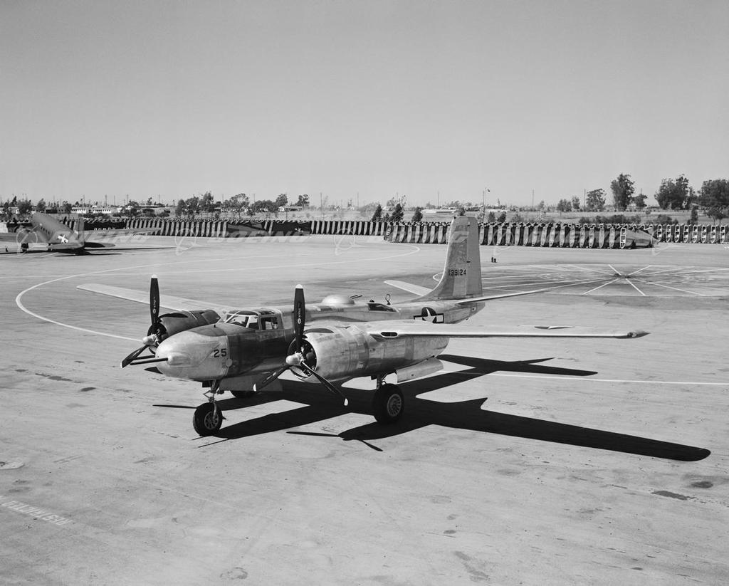 Douglas A-26/B-26 Invader (1942-1946): The A-26 was a sleek attack plane that could carry double the payload of any other twin-engine tactical aircraft of World War II. It made its first flight on July 10, 1942, went into production in September 1943, and flew its first combat missions in June 1944. The last of 2,503 A-26s were delivered in 1946. Invaders were built at Douglas factories in Long Beach, Ca. and Tulsa, OK. Though in action only a year before the war ended, the plane so impressed postwar planners that it was chosen as the standard light bomber for the new U.S. Air Force, becoming the B-26 Invader from 1948 to 1966 before reverting back to A-26. The Invader served as a front-line aircraft during the Korean and Vietnam wars. The U.S. Navy and the air forces of 16 countries also flew Invaders. A-26s flew their last U.S. combat missions in 1969 over Southeast Asia, earning the distinction of being the first American tactical aircraft to fly in three wars.
