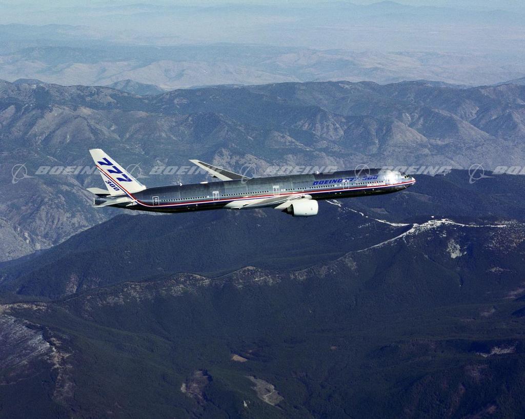 The wide-body Model 777 was the first commercial jet that was 100 percent digitally designed using three-dimensional solids technology. It earned the Collier Trophy for top aeronautical achievement in 1996. The twinjet commercial transport uses fuel efficiently, and its comfortable cabin is very popular with passengers. The 777-200 can take 305 passengers 5,995 miles. The 777-300 can carry 368 passengers 6,899 miles. Launched in February 2000, the 777-200LR and 777-300ER will fly 9,420 or 7,880 nautical miles, respectively.