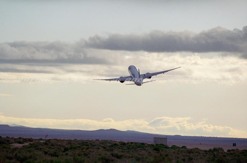 777-300ER Takes Off on Flight Test from Edwards Air Force Base