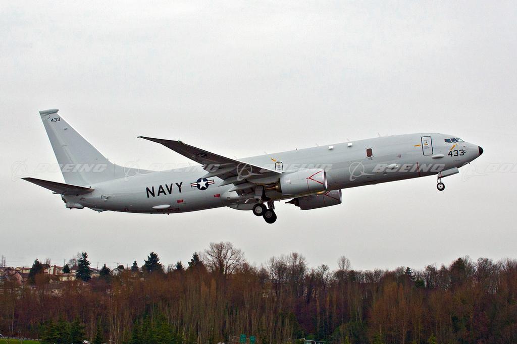 US Navy P-8A Poseidon Takes Off from Boeing Facility