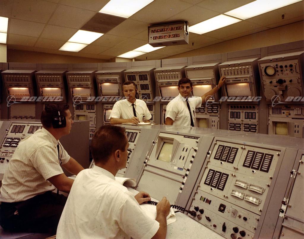 Boeing engineers provide support to the control room at Cape Kennedy, Florida.