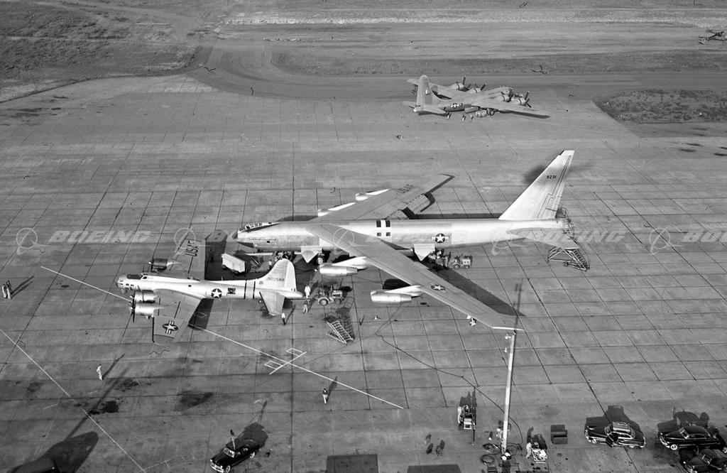 YB-52 Stratofortress with B-47 Stratojet at Boeing Field