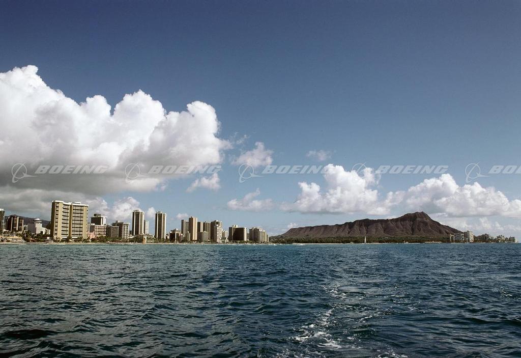 Diamond Head and Waikiki Shoreline from the Ocean, Oahu, Hawaii