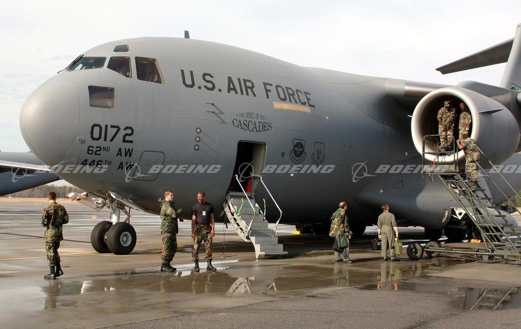 Boeing Ground Worker Inspects a C-17 Globemaster III