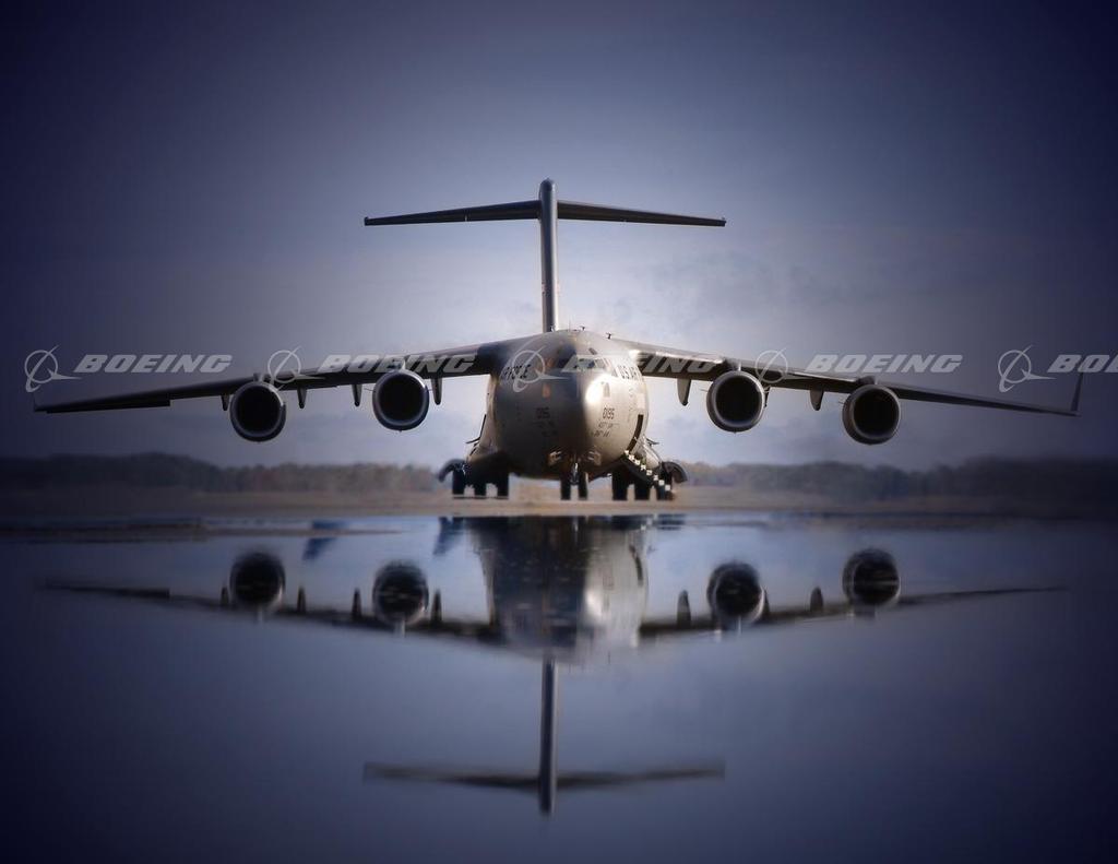 C-17 Globemaster III Mirror Image Reflected in Wet Tarmac