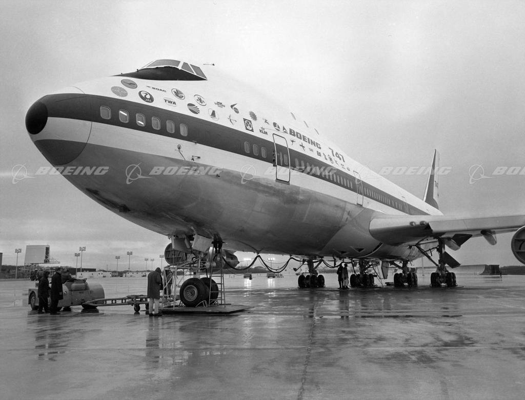 First 747-100 in Factory with First Production 747