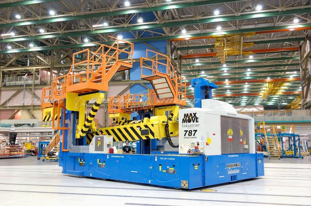 Because the 787 is assembled from large assemblies rather than many smaller pieces, traditional monument assembly tools are not necessary. Portable tools, designed with ergonomics in mind, move the assemblies into place. No overhead cranes are used to move airplane structure.