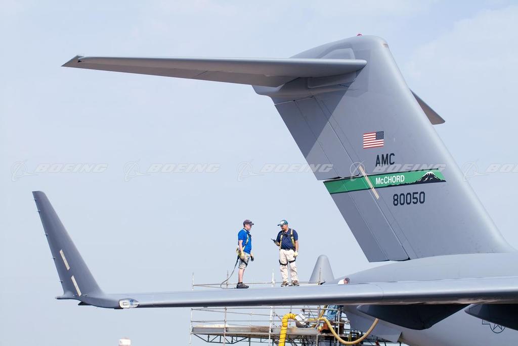 Boeing Maintenance Crew Inspects a C-17 Gobemaster III