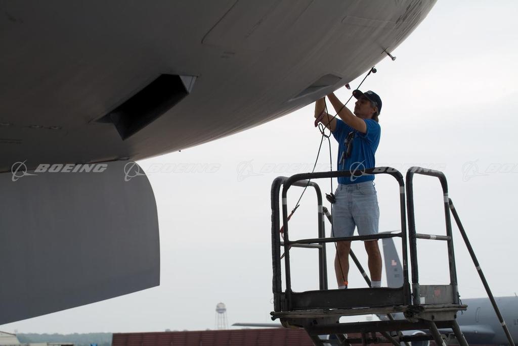 Boeing Maintenance Worker Inspects a C-17