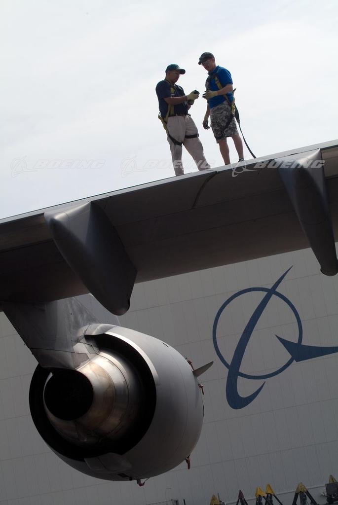 Boeing Workers on the Wing of a C-17 Globemaster III