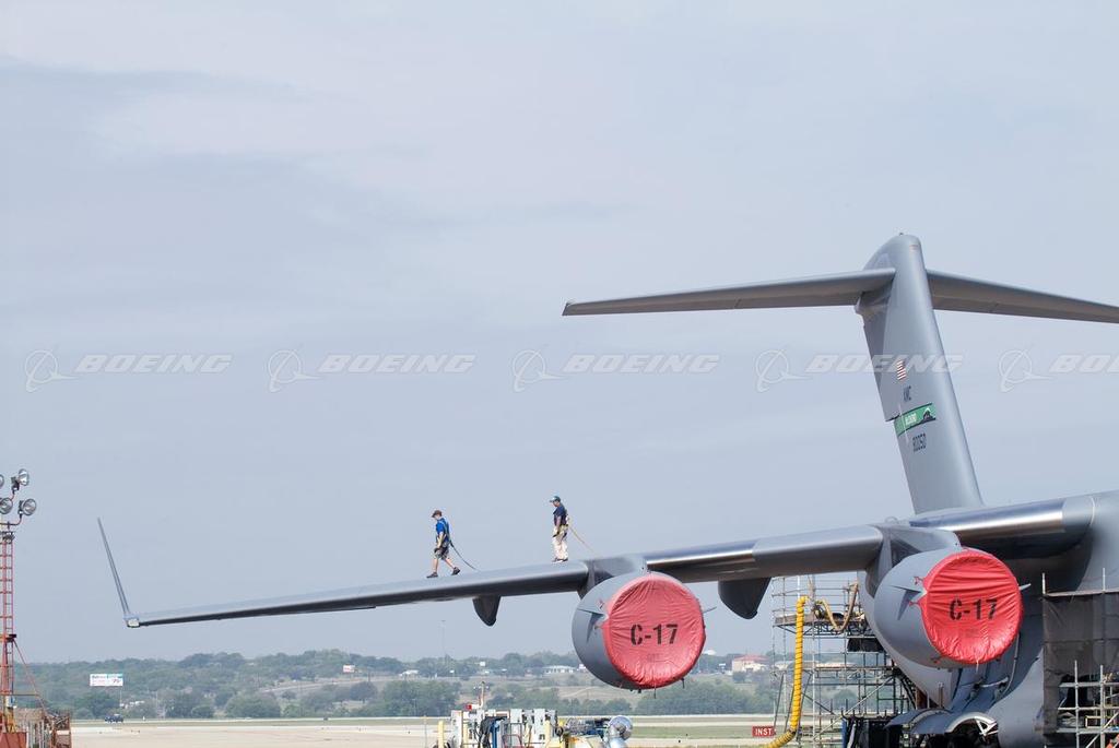 Boeing Workers on the Wing of a C-17 Globemaster III