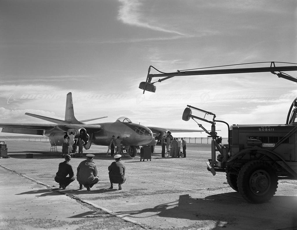 The North American Aviation B-45 was one of America's first operational bombers to employ jet propulsion. Designed during 1944 and 1945, the straight-wing Tornado was the first jet bomber in service with the U.S. Air Force and was the first four-jet aircraft to fly in the United States.